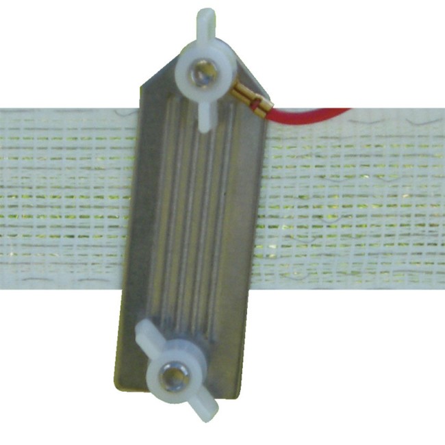 Conector de pastor eléctrico a Cinta Ancha Encontrar un distribuidor Características Se utiliza para conectar la cinta conductora alpastor eléctrico.Adecuado para su uso con cinta eléctrica de hasta 40mm de ancho Encontrar un distribuidor